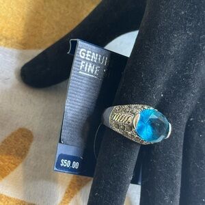 Blue Silver Marcasite Ring Size 8