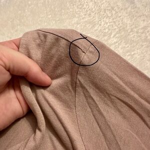 There is a small pin hole in the left shoulder. It is not very noticeable. See pictures.