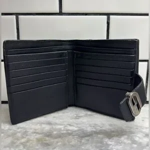 Gucci Black Leather Wallet Crossbody - Silver GG Buckle - Chain Strap