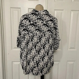 EUC easy breezy black and off white floral button up top with rolled sleeves. Measurements flat: 23” from shoulder to hem (front) 24.5” (back) and 27” pit to pit. 100% Rayon. Purchased from Vici Collection.