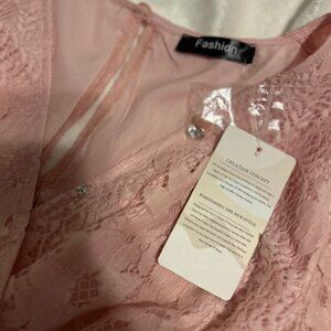 NWT Women's Pink Lace Romper SZ SM