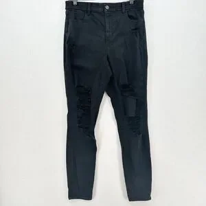 American Eagle Jeans 12 Long Curvy Hi Rise Jegging Next Level Black Distressed