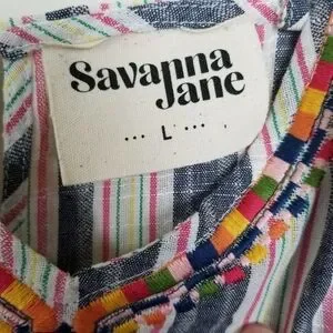 Savanna Jane Striped Embroidered Cami Sundress Large