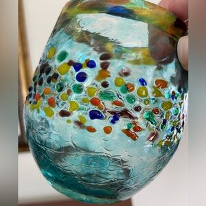 10 oz turquoise Blue Green Crackle Recycled Glass Wine Glass Tumbler, Drinking Glasses