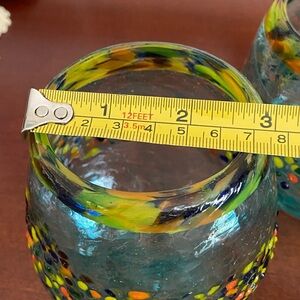 They came in 2 sets of 2. Colors are slightly different between the 2 sets but they still match. Typical of hand blown glass. Colorful confetti styling.