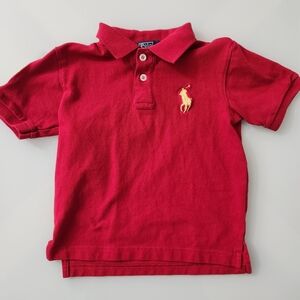 This classic red polo shirt by Polo by Ralph Lauren is perfect for your child's wardrobe. Made with quality materials, it offers comfort and style for any occasion. Used in good condition.
