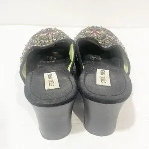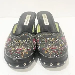 Steve Madden Size 6.5 Black Y2K Satin Beaded Clogs