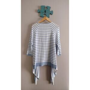 Chicos Blue White Nautical Stripe Open Cardigan Top