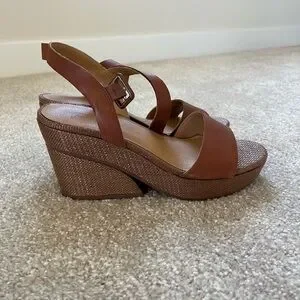 Crown Vintage Women's Brown Leather Wedge Heel Sandals Size 8.5