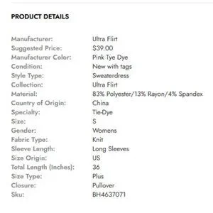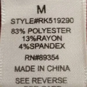 Material: 83% Polyester/13% Rayon/4% Spandex