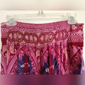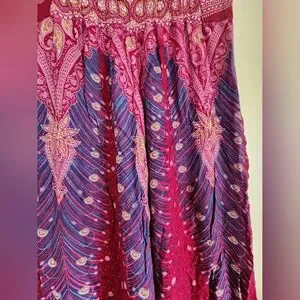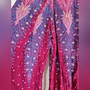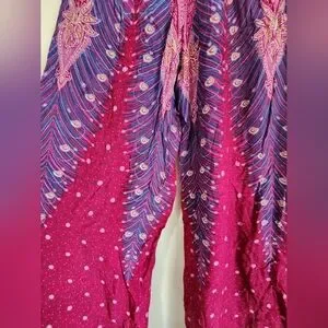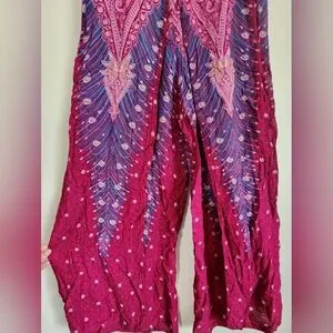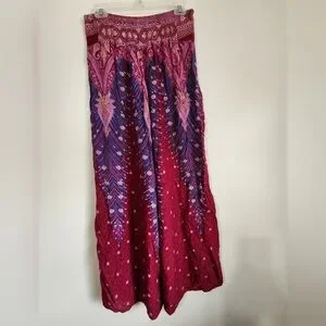 Vibrant bohemian wide leg pants with red and purple patterns. Perfect for a stylish look. No Pockets. 100% Cotton. OR BEST OFFER