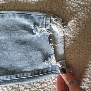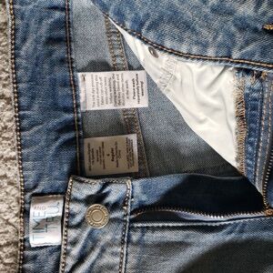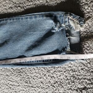 Brand new with tags Time and Tru light wash distressed high rise straight jeans, women's size 6 regular. Does run a little big due to the stretch, refer to measurements.