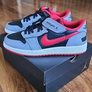 NIKE Air JORDAN Low FLYEASE Zipper Gray, Black & Red Sneakers NEW IN BOX