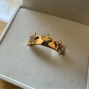 Shine bright with this elegant gold star ring. Perfect for adding a touch of glamour to any outfit. Three gold stars. Bracha jewelry circa 2017/2018.