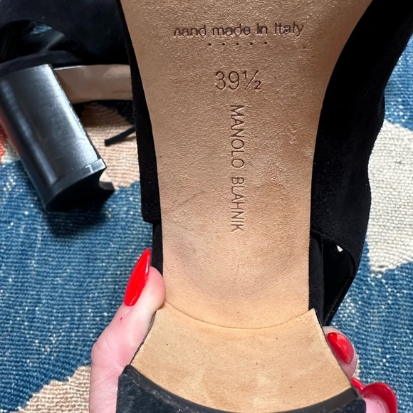 Gorgeous pair of Manolo Blahnik Attal gladiator sandals in black suede. Like new- slight wear on soles but the interior and exterior of shoes look unworn