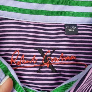 Robert Graham X Shirt Mens 2XL Purple Striped Button Up Flip Cuff Long Sleeve