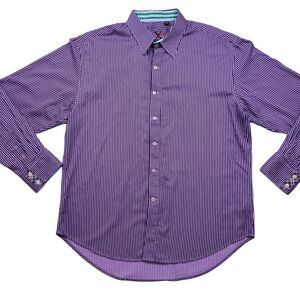 Robert Graham X Shirt Mens 2XL Purple Striped Flip Cuff Long Sleeve Button Up