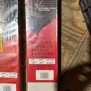 Two sets of 1 inch vinyl mini blinds with tilt and valance color is black