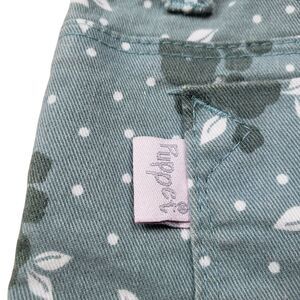 Puppet Floral Shorts Girls 8 Green Polka Dot Denim Elastic Waist Cuffed Stretch
