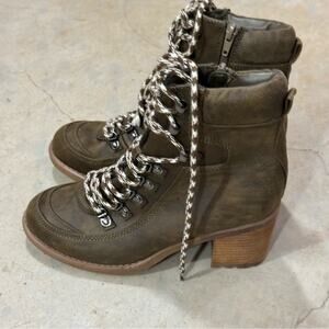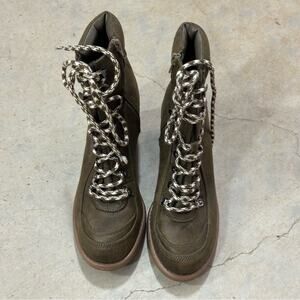 Just in 💫| Carlos Santana Green Combat Ankle Boots Lug Sole Stacked Heel M8