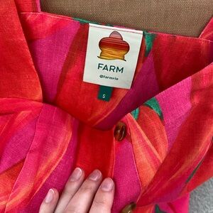 Love this dress, but I outgrew it! Only worn once, so it’s in like new condition. Super fun red hot chili pepper print. Bought directly from Farm RIO a few years ago.