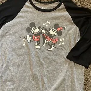 Torrid Gray and Black Mickey and Minnie 3/4 Sleeve Tee
