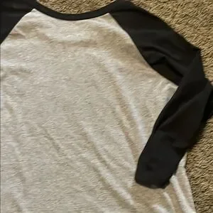 This Torrid tee features a stylish gray and black color scheme with 3/4 sleeves, perfect for casual wear. The classic crew neckline and contrasting design add a touch of flair to your everyday look. Enjoy the comfort and versatility of this top, ideal for any relaxed occasion.