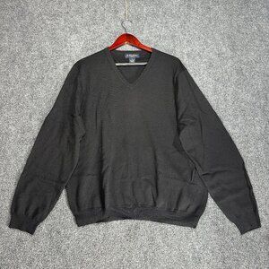 Brooks Brothers Sweater Mens Large Black Merino Wool Stretch Ribbed Hem V Neck