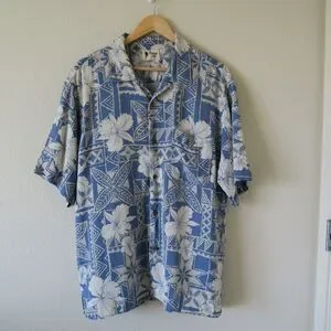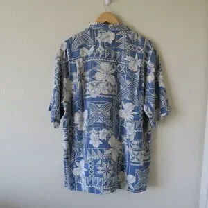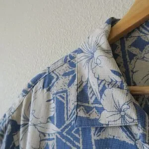 VINTAGE SILK Blue Hawaiian Shirt Size XL Waffle Textured Lightweight Casual