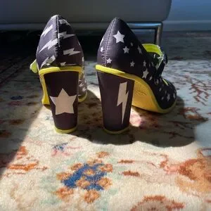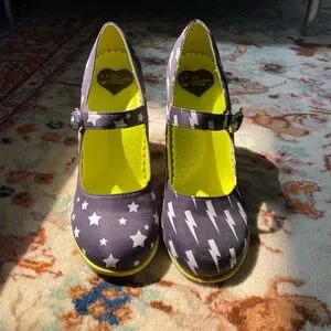 These stylish Hot Chocolate Design shoes feature a fun star and lightning pattern, perfect for adding a playful touch to any outfit. Fantastic for costumes and also comfortable enough for daily wear. The vibrant yellow interior adds a pop of color, ensuring comfort and style. Women’s size 6.