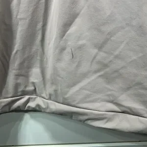 Measures approx 29” shoulder to waist and approx 26” pit to pit. Has a small spot on the front that I have not attempted to clean appears that it would.