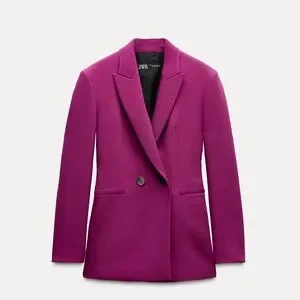 This Zara blazer in a striking purple hue offers a sophisticated and modern tailored fit. Crafted from high-quality fabric, it features a classic silhouette with notched lapels, making it a standout piece in any wardrobe. Ideal for adding a touch of elegance to your ensemble.