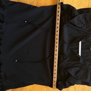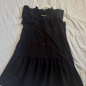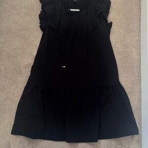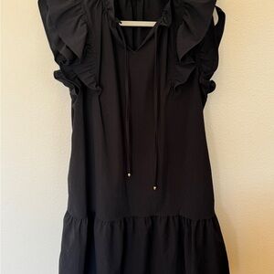 Elegant black dress with ruffled sleeves. Perfect for any occasion.
