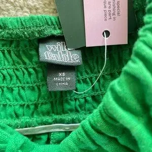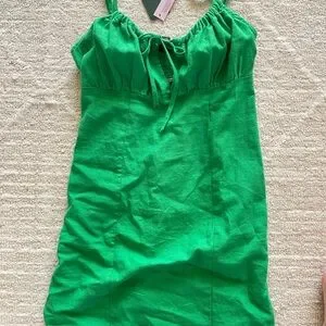 This βXSβ Fits like a size 4! Straps are fully adjustable for small to larger bust line. Let me know if youβd like measurements. Chic strappy linen summer dress in a vibrant Kelly Green color. Features an adjustable tie-front detail and adjustable straps too as shown. Purchased from Target. Looks especially cute with a jean jacket and sandals for summer! πΈβοΈπ₯