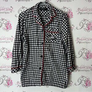 Stylish black and white checkered women's top with red accents. Perfect for casual outings or lounging at home. Xs. Get ready for an abundance of compliments! π Youβll be celebrated for your exceptional taste! π