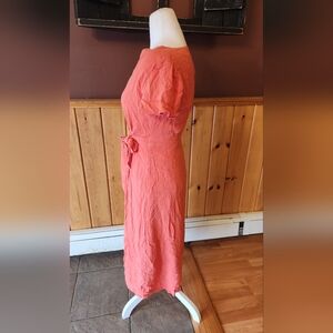 Loft V Neck Midi Shirt Dress Coral Button Down Sundress Size 0