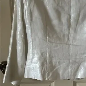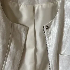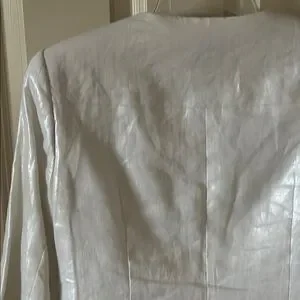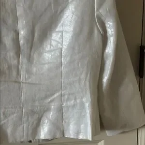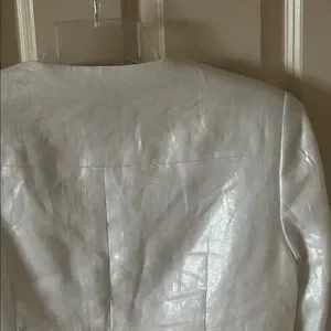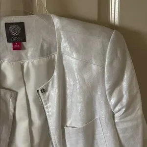 This elegant white Vince Camuto jacket offers a chic and sophisticated look. Perfect for any occasion. Its sleek design and high-quality material ensure both comfort and style. Size 8. Worn once; like new! Comes from a pet-free, smoke-free home.