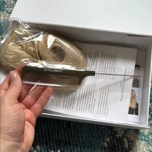 Sitting Pretty halo extensions with Velcro clips, nylon wires, stretchy wires, box, instructions, and tail comb.