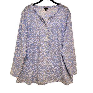 Womens Talbots LS Lightweight Spring Summer Blue Floral Coastal Top Blouse Sz 1X