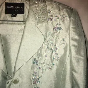 Sag Harbor Suit Petite Size 8P Seafoam Silvery Green Long Sleeve- Skirt Set