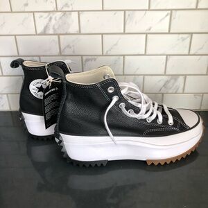 Chuck Taylor Converse Black and White Leather Unisex High-Top Sneakers. NEW!