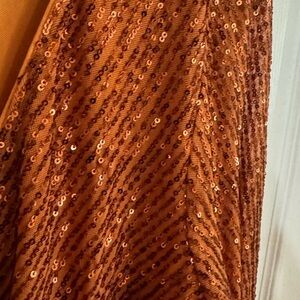 Shine in this stunning sequin wrap dress, perfect for any special occasion. The elegant rust/copper hue adds a touch of glamour to your wardrobe.