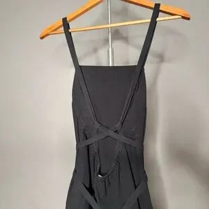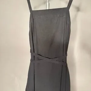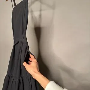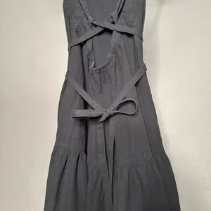 EVERLANE • The Pinafore Dress - Cotton Stretch Tiered Spaghetti Strap Midi Dress with Pockets in Faded Black. Size 00. Retail: $110