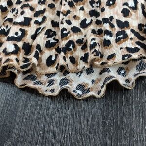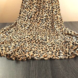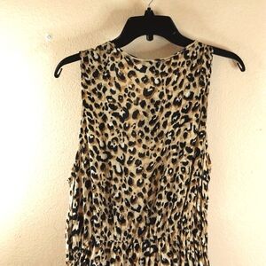 Democracy Size L Leopard Print Rayon Sleeveless Dress.Cascading Ruffle V Neck