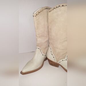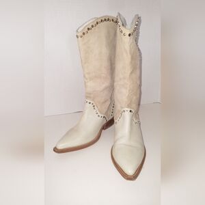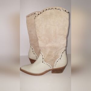 Free People Tan Western Studded Country Cowboy Boots Chappelle Roan Style 6.5