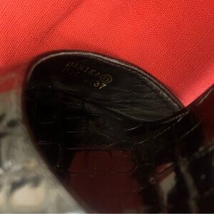 Step out in style with these chic black croc-embossed platform heels. Perfect for any occasion, these shoes offer both elegance and comfort.