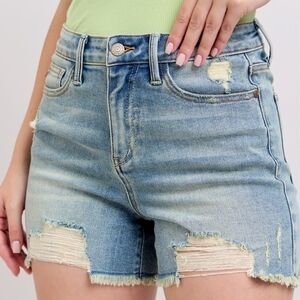 Judy Blue Full Size High Rise Washed Fly Stitch Detail and Destroy Denim Shorts