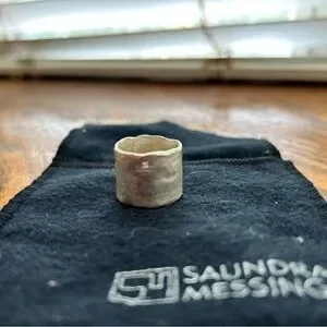 Saundra Messinger sterling sliver ring w/diamond accent, size 8. Perfect for adding a touch of sophistication to any outfit.