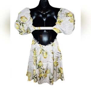 For Love And Lemons Serafina Lemon Puff Sleeve Mini Dress Small