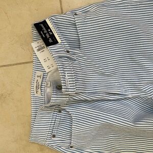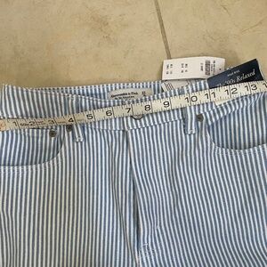 Brand new with tag. A&F cropped relax high rise jean. Blue and white stripes.